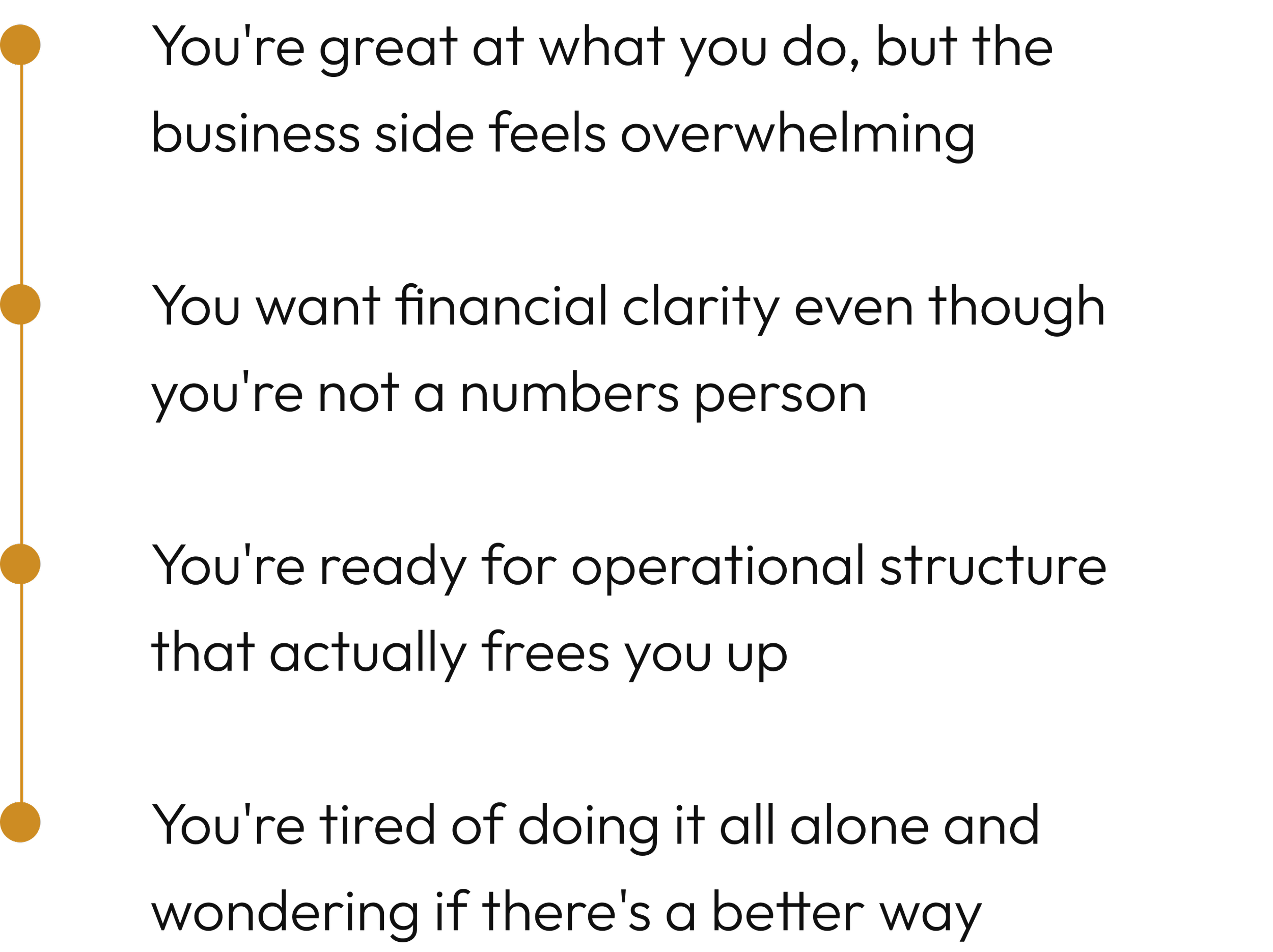 You didn't become self-employed to spend your time feeling defeated by bookkeeping, operations, and business decisions you're not sure how to make. You started this to do work you love, on your own terms.